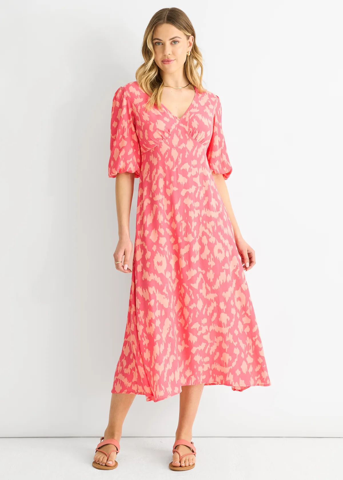 Roze viscose midi-jurk met dierenprint