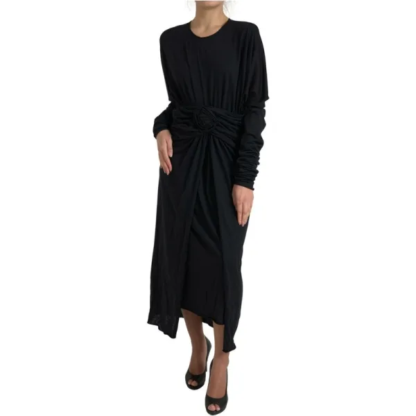 Stap naar buiten, val op en steel de show. Deze midi-jurk van Dolce & Gabbana biedt moeiteloze elegantie en ongeëvenaard comfort. De relaxte pasvorm valt mooi, terwijl het rozen-detail de taille accentueert voor een flatterende silhouet. Lange mouwen en een ronde halslijn zorgen voor tijdloze verfijning. De luxueuze jersey brei stof voelt zacht aan op de huid. Perfect voor cocktailfeesten, avond evenementen of elke speciale gelegenheid waar je een blijvende indruk wilt maken. Combineer met hakken en opvallende sieraden voor een onvergetelijke look.