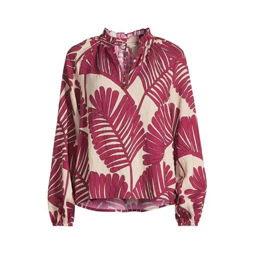 Ruby blouse met bladprint bordeauxrood Prijzen