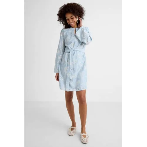 Ruby broderie midi jurk lichtblauw Prijzen