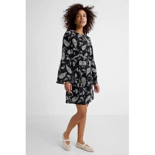 Deze jurk voor dames van Ruby is gemaakt van een linnenmix. Het model heeft een A-lijn, ronde hals en lange mouwen. De jurk komt boven de knie en heeft een ceintuur in de taille. Aan de voorkant heb je een knoopsluiting bij de hals en bij de schouders heb je schoudervulling. De afneembare tailleceintuur accentueert subtiel de vrouwelijke pasvorm. In de stof is een broderie verwerkt, wat de jurk een subtiele, vrouwelijke en luxe touch. Een stijlvolle en veelzijdige outfit, perfect voor elke gelegenheid.Details van deze jas:• A-lijn• ronde hals• knoopsluiting• lange mouwen• broderie detail• schoudervulling• afneembare tailleceintuur• gemaakt van een geweven kwaliteit