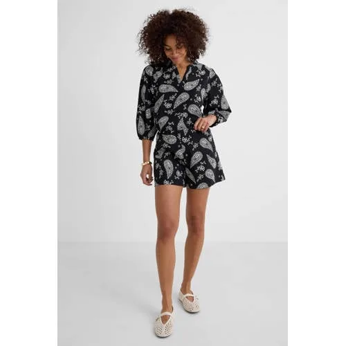 Ruby broderie short met linnen zwart Prijzen