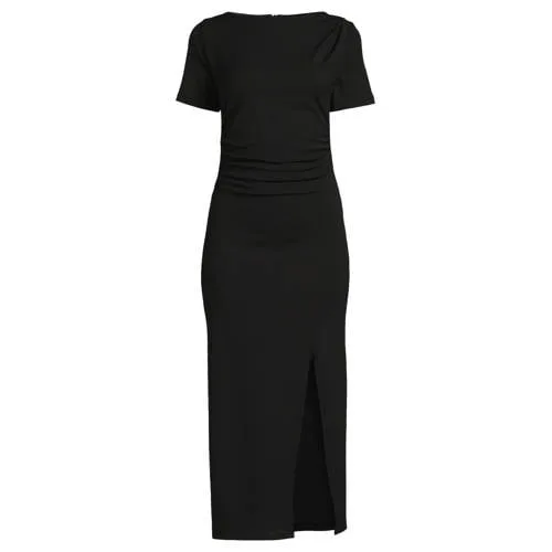 Deze jurk voor dames van Ruby is gemaakt van een elastische polyesterstof. Het model heeft ronde hals, korte mouwen en ritssluiting. Aan de voorkant heb je een subtiele split. In de stof is een crepe weving verwerkt, waardoor het een chique uitstraling geeft. Verder is de jurk voorzien van plooien detail aan de zijkant, waardoor het een aansluitend pasvorm geeft. Veelzijdig en ideaal voor elke gelegenheid.Details van deze jurk:• ritssluiting• ronde hals• crepe weving• korte mouwen• aansluitend pasvorm• split aan de voorkant• plooien detail aan de zijkant en bij de sschouders
