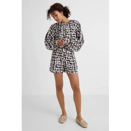 Ruby short met ceintuur en linnen all-overprint Prijzen