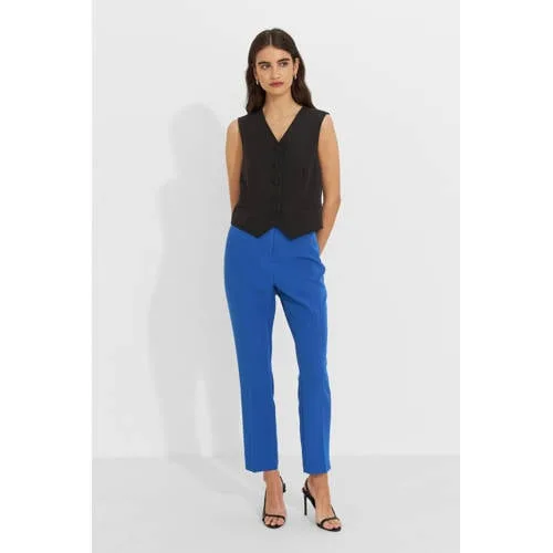 Deze pantalon voor dames van Ruby is gemaakt van een zachte polyesterstof met stretch. Het model heeft een tapered fit en hoge taille. Bij de taille heb je een half elastische band. Maak de look compleet door het te combineren met de bijpassende blazer voor een stijlvolle look!Details van deze pantalon:• high waist• 7/8 lengte• tapered fit• comfort stretch• sierzakken achter• half elastische tailleband• gemaakt van een zachte polyester spandex