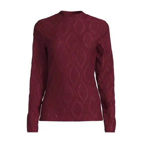 Deze top voor dames van Ruby is gemaakt van een elastische polyester. Het model heeft een opstaande kraag en lange mouwen. In de stof is broderie verwerkt, wat zorgt voor een subtiele, vrouwelijke en luxe touch. Dankzij de soepele elastische stof, sluit het mooi aan en zit het comfortabel. Perfect om zowel casual als chic te dragen Details van deze top:• lange mouwen• elastische stof• broderie detail• opstaande kraag• aansluitend pasvorm
