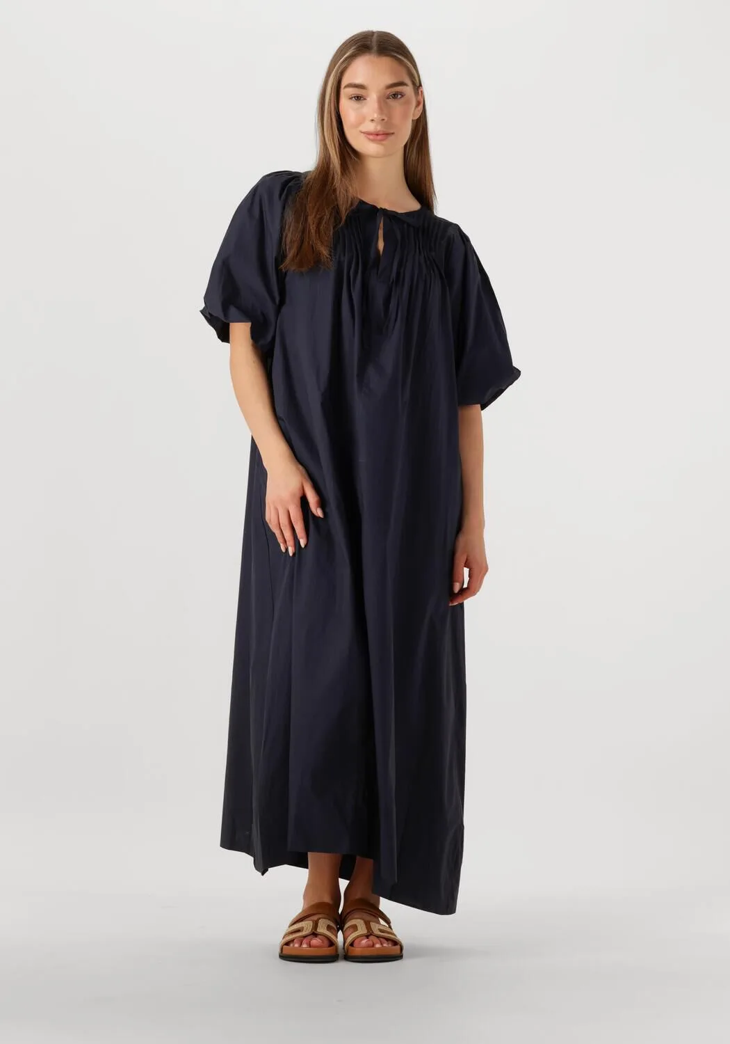 Stap stijlvol de lente en zomer in met de donkerblauwe IBAE maxi jurk van RUBY TUESDAY. Deze jurk is perfect voor een ontspannen picknick in het park of een zomerse avondwandeling langs het strand. De vloeiende stof en elegante snit zorgen voor een moeiteloze uitstraling. Combineer de jurk met een lichte denim jas voor een casual look of draag 'm met een paar sandalen voor een chique touch. De IBAE maxi jurk is een veelzijdige aanvulling op je garderobe en laat je stralen tijdens zonnige dagen.