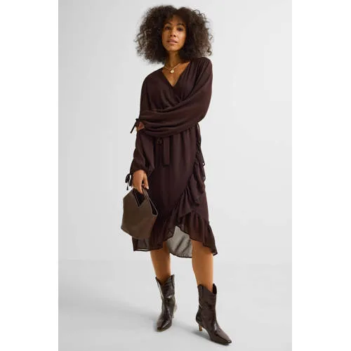 - Bij wehkamp.nl kun je Ruby wikkeljurk met rushes donkerbruin kopen voor slechts €39,00