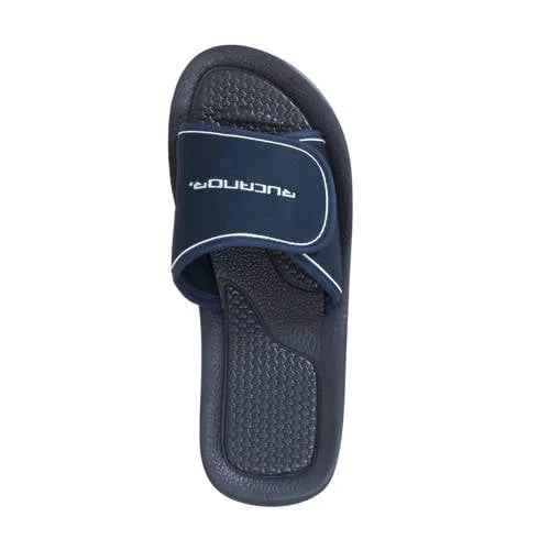 Heren badslippers van Rucanor. Deze slipper heeft een brede band met merknaam en sluit met klittenband. Het voetbed met textuur zorgt voor comfort.