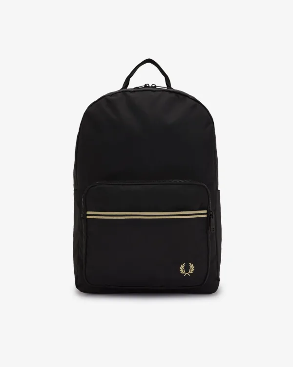 Deze rugzak is vervaardigd uit volledig gerecycled nylon, wat een duurzame keuze biedt voor dagelijks gebruik. Het heeft een dubbele ritssluiting, zijzakken voor waterflessen en een gewatteerd vak om apparaten zoals laptops te beschermen. Het ontwerp omvat dubbele tippingdetails op het voorvak en een geborduurd laurierkranslogo, wat zorgt voor subtiele merkreclame. Gewatteerde schouderbanden zorgen voor extra comfort tijdens langdurig dragen, terwijl een handvat aan de bovenkant het gemakkelijk maakt om te dragen. Met afmetingen van 46 x 31 x 14 cm is deze veelzijdige tas geschikt voor werk, school of casual uitjes, waarbij praktische functionaliteit wordt gecombineerd met een ingetogen stijl.