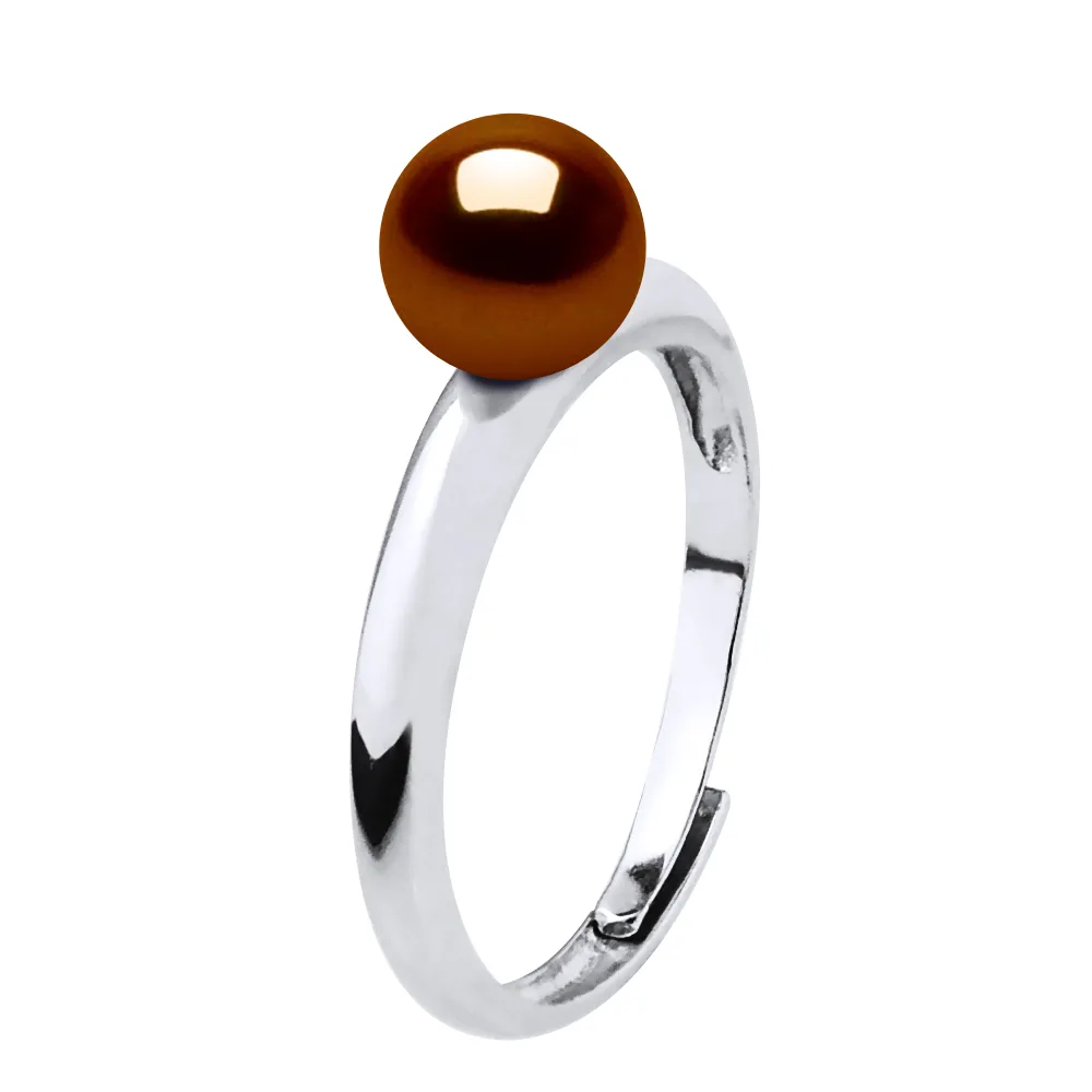 Ring Rush Echte zoetwaterparels Round 6-7 mm - Kwaliteit AAAA + - COLORI CHOCOLADE - Verstelbare vanaf maat 48 tot Size 62-925 duizendste rhodium - 2 jaar garantie op fabricagefouten -Livrée in haar geval met een certificaat van echtheid en een internationale garantie - Al onze juwelen zijn gemaakt in Frankrijk.