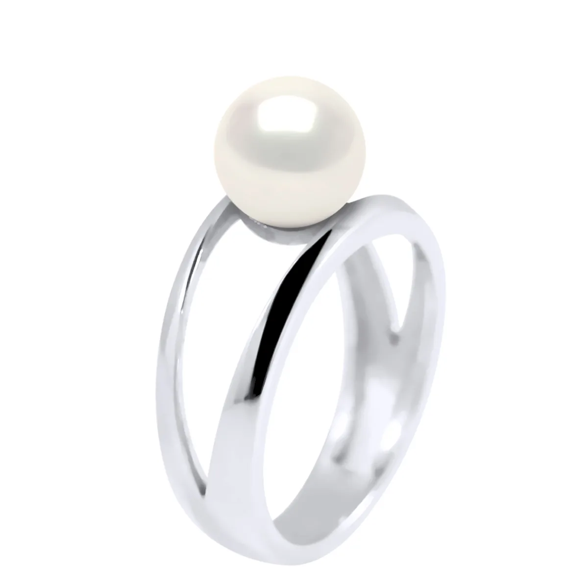 Ring Rush Open Echte Gekweekte Pearl Zoetwater 7-8mm Button - Quality AAAA + - Colori NATUURLIJK WIT - White Gold Jewelry 375 duizendste - Verkrijgbaar van maat 48 tot maat 62 -Garantie 2 jaar op fabricagefouten - geleverd in een presentatie geval met een certificaat van authenticiteit en een Internationale Garantie - Al onze juwelen zijn gemaakt in Frankrijk.