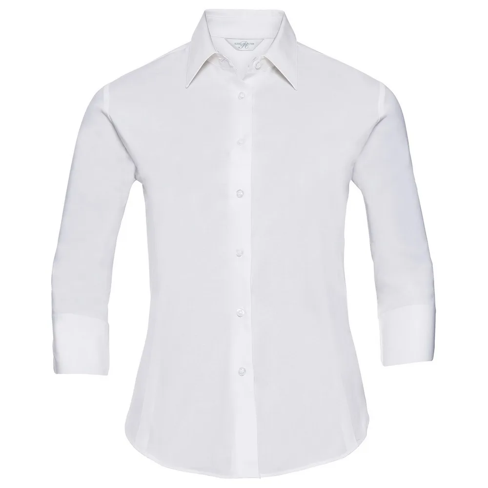 Russell Collection Dames/Dames Easy-Care 3/4 mouw Formeel Overhemd (Wit)