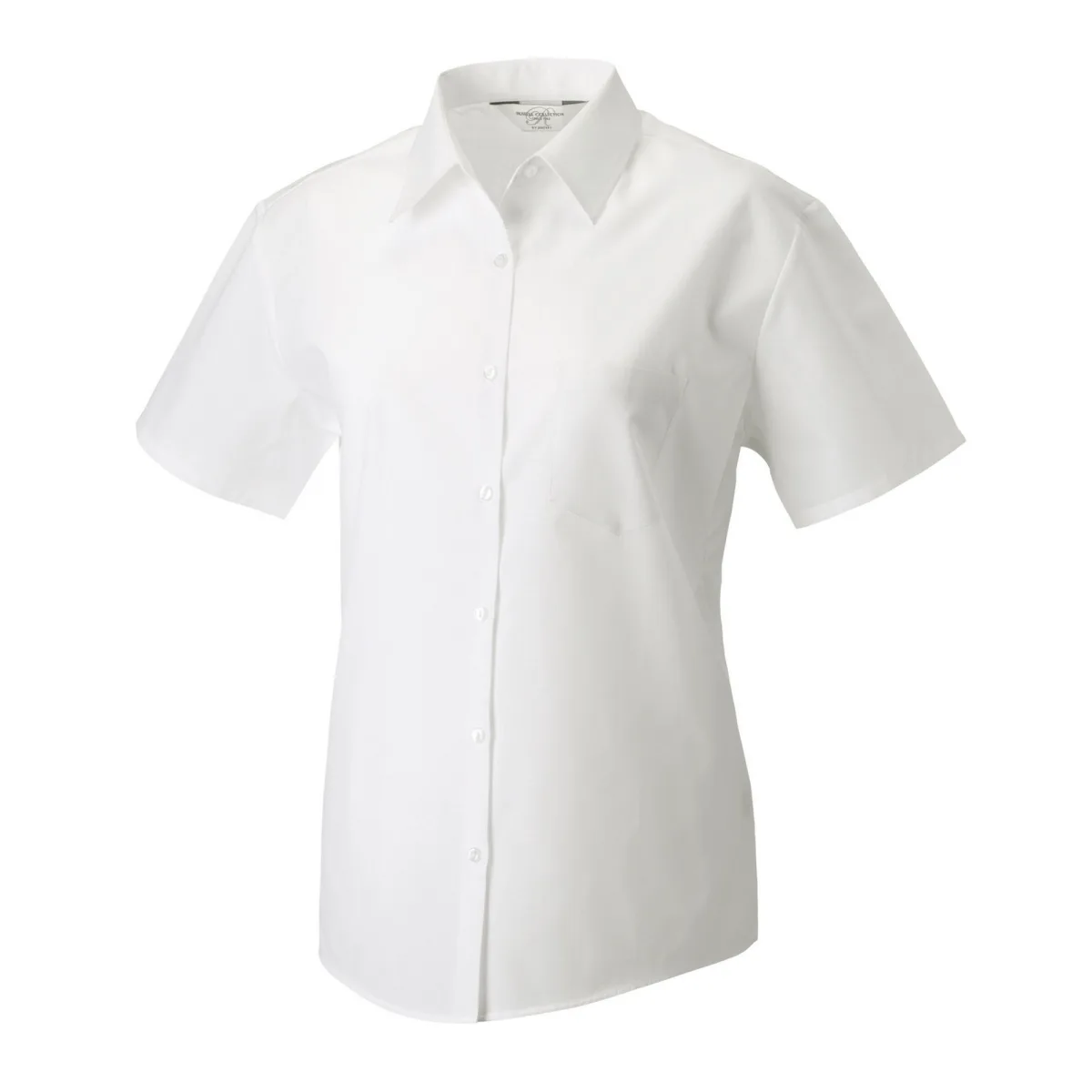 Russell Collection DamesDames Poplin EasyCare Overhemd met Korte Mouwen Wit