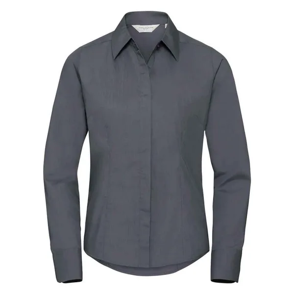 Russell Collection Dames/Dames Poplin met Lange Mouwen Formeel Overhemd (Konvooi Grijs) Prijzen