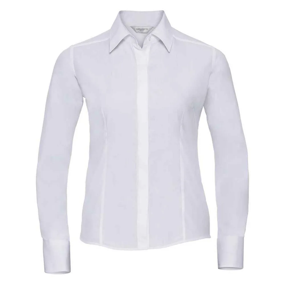 Russell Collection DamesDames Poplin met Lange Mouwen Formeel Overhemd Wit