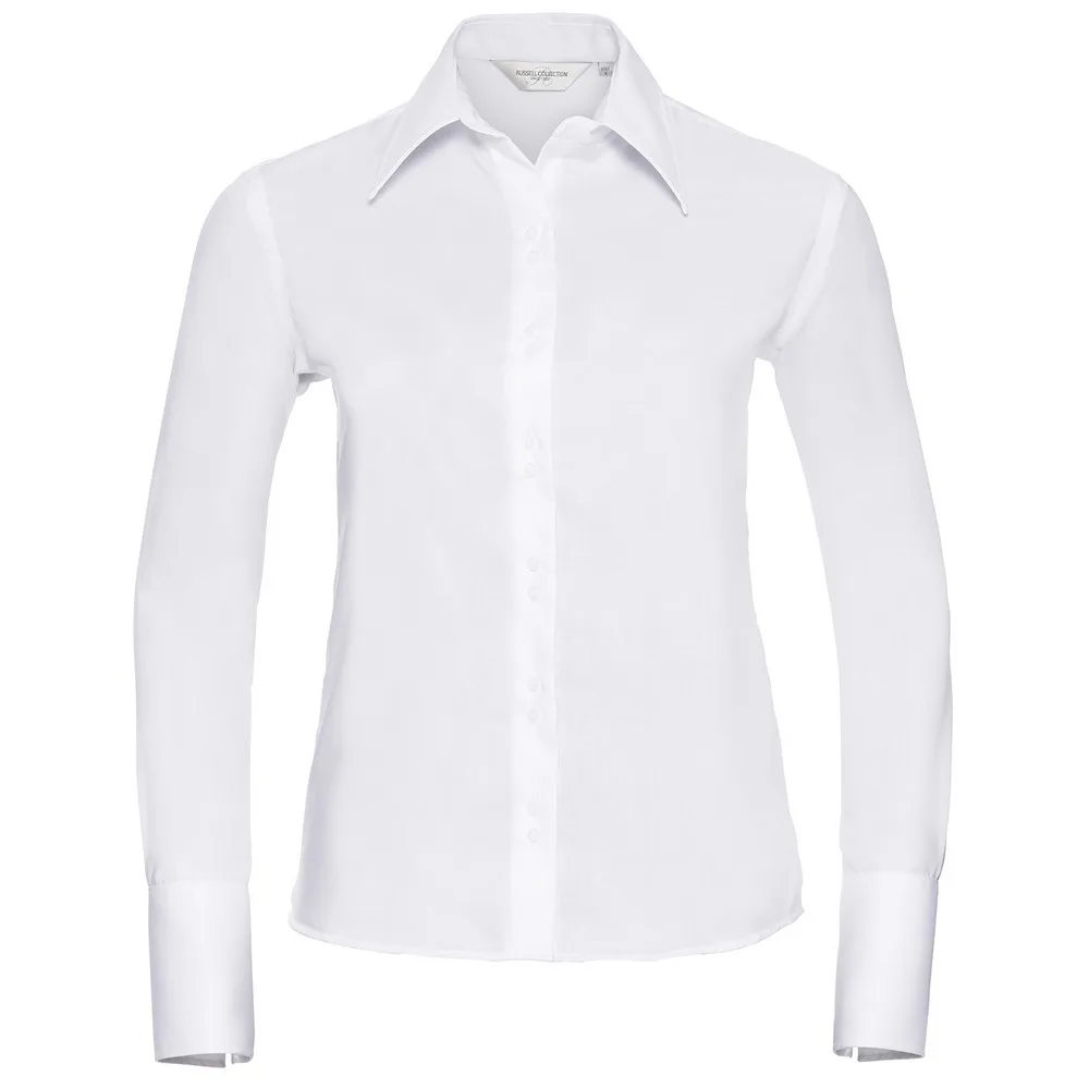 Russell Collection DamesDames Ultimate NonIron Shirt met Lange Mouwen Wit