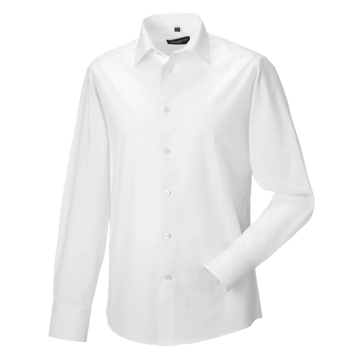 Russell Collection Heren overhemd met lange mouwen (Wit)