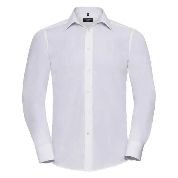 Russell Collection Heren Poplin Getailleerd Formeel Overhemd Met Lange Mouwen...