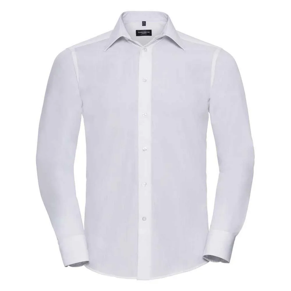 Russell Collection Heren Poplin Getailleerd Formeel Overhemd Met Lange Mouwen (Wit) Prijzen