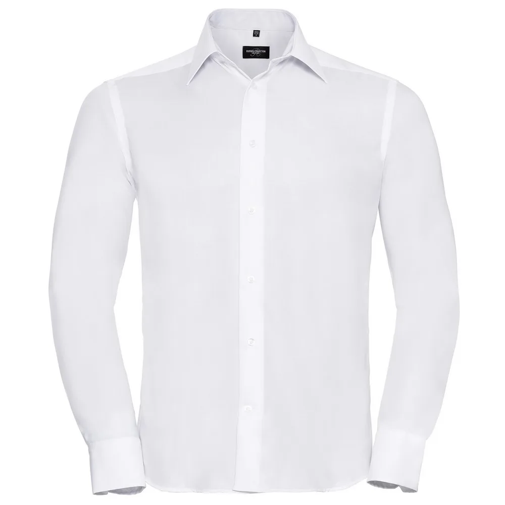 - De laagste prijs van Russell Collection Heren Ultimate Getailleerd Overhemd met Lange Mouwen (Wit) werd gevonden op 28 april 2026 19:48.