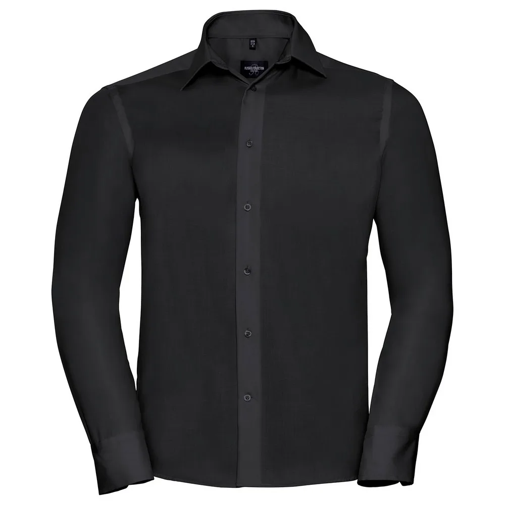 Russell Collection Heren Ultimate Getailleerd Overhemd met Lange Mouwen Zwart