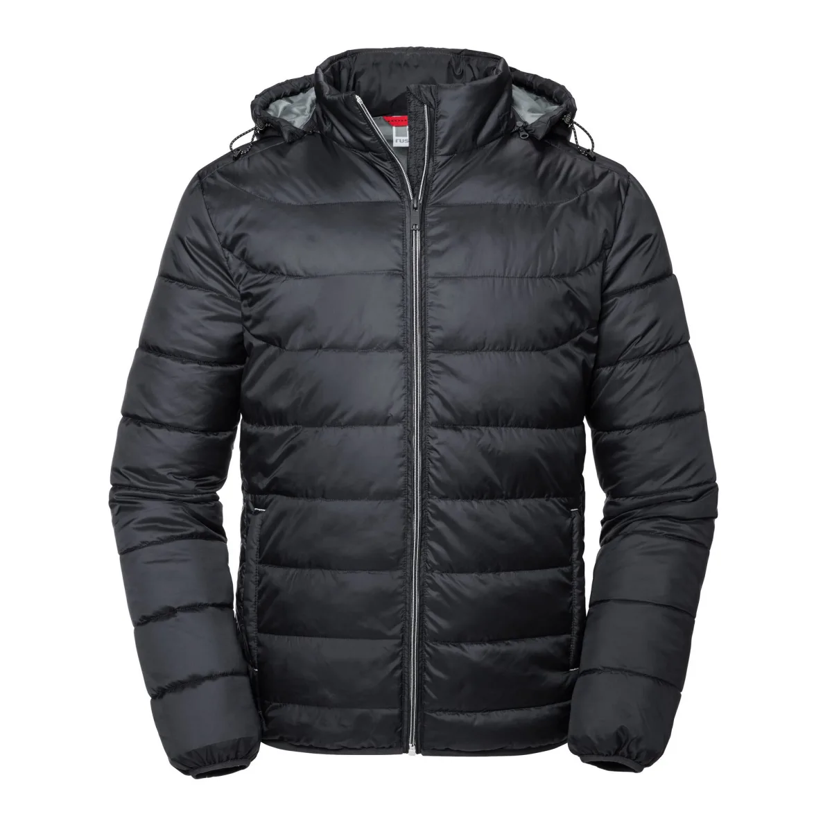 Russell Heren Nano Gewatteerd jack met capuchon (Zwart)