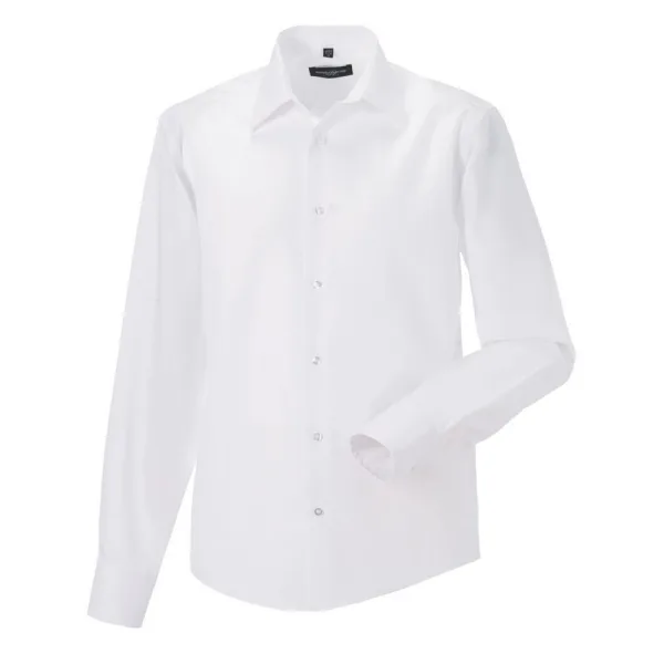 Russell Heren Ultimate Non-Iron Getailleerde Formele Overhemd met Lange Mouwen (Wit)