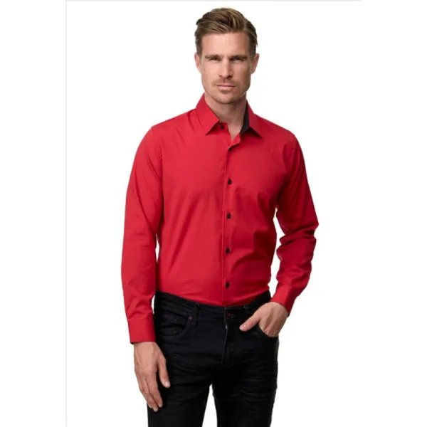 Rood heren overhemd van het merk Rusty Neal. Deze nette slim fit overhemden hebben een zakelijke uitstraling, maar zijn ook zeer geschikt als vrijetijdskleding. Het basic overhemd voor mannen heeft een slim fit pasvorm. Het heren overhemd (https://italian-style.nl/heren/italiaanse-overhemden/lange-mouw) is voorzien van een zwarte binnenboord. Ook is de binnenkant van de manchet zwart van kleur. Tevens is de knoop van de blouse in de kleur zwart. Je kunt het overhemd voor mannen goed combineren in je outfit met een chino of een jeans. Materiaal: 60% katoen, 37% Polyester, 3% Elastan Kleur: Rood Pasvorm: Slim fit