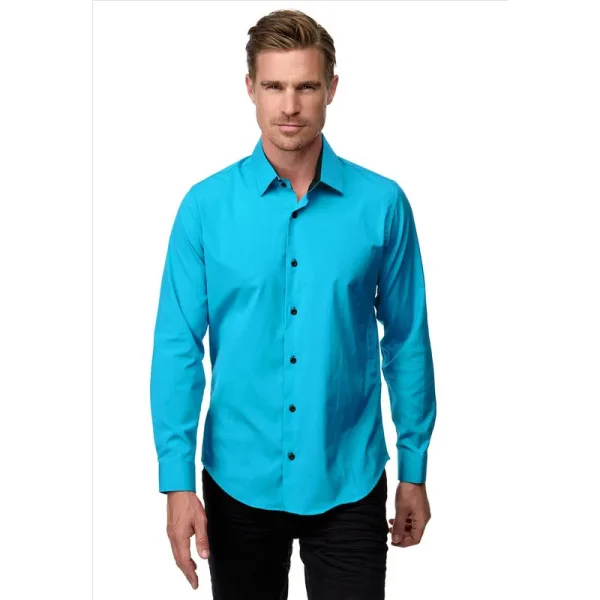 Heren overhemd van het merk Rusty Neal. Deze nette slim fit overhemden hebben een zakelijke uitstraling, maar zijn ook zeer geschikt als vrijetijdskleding. Het basic heren overhemd voor mannen heeft een slim fit pasvorm. Het overhemd is voorzien van een zwarte binnenboord. Ook is de binnenkant van de manchet zwart van kleur. Tevens zijn de knopen van de blouse zwart. Materiaal: 60% katoen, 37% Polyester, 3% Elastan Kleur: Turquoise blauw