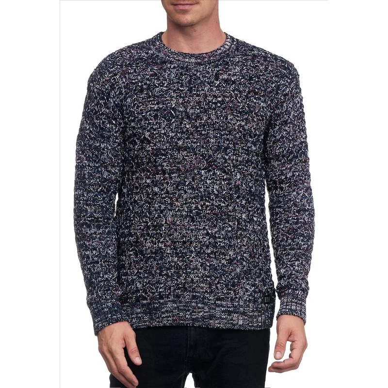 Stoere trui voor heren van het Moda Italia merk Rusty Neal. Deze mannen trui staat perfect op jouw casual outfit. Tevens is de heren trui voorzien van een grof gebreid patroon en heeft een ronde hals. - Pasvorm: Normaal - Materiaal: 70% Polyacryl 30% katoen - Kleur: Indigo