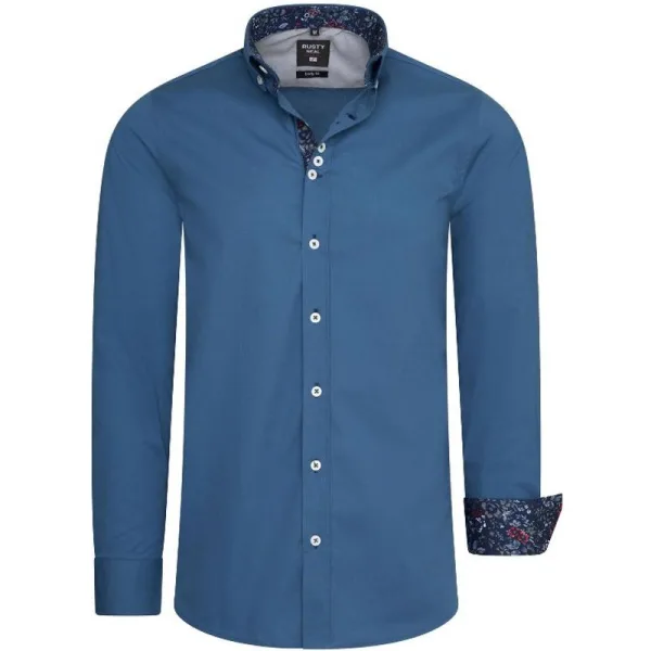Petrol effen heren overhemd van het Moda Italia Merk Rusty Neal. Deze Italiaanse overhemden hebben een zakelijke uitstraling, maar zijn ook zeer geschikt als vrijetijdskleding. De blouse voor mannen heeft een gebloemd motief in de kraag ook vind je dit gebloemde patroon in de manchet terug. Tevens zijn de knopen transparant uitgevoerd. Materiaal: 97% katoen, 3% Lycra Pasvorm: Normal fit Kleur : Petrol