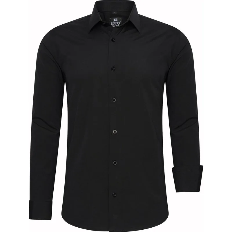 Rusty Neal overhemd voor heren. Het overhemd is gemaakt van katoen, polyester en elastaan en heeft een slim fit pasvorm. Merk: Rusty NealModelnaam: Overhemd UniCategorie: herenMaterialen: katoen, polyester, elastaanKleur: zwart