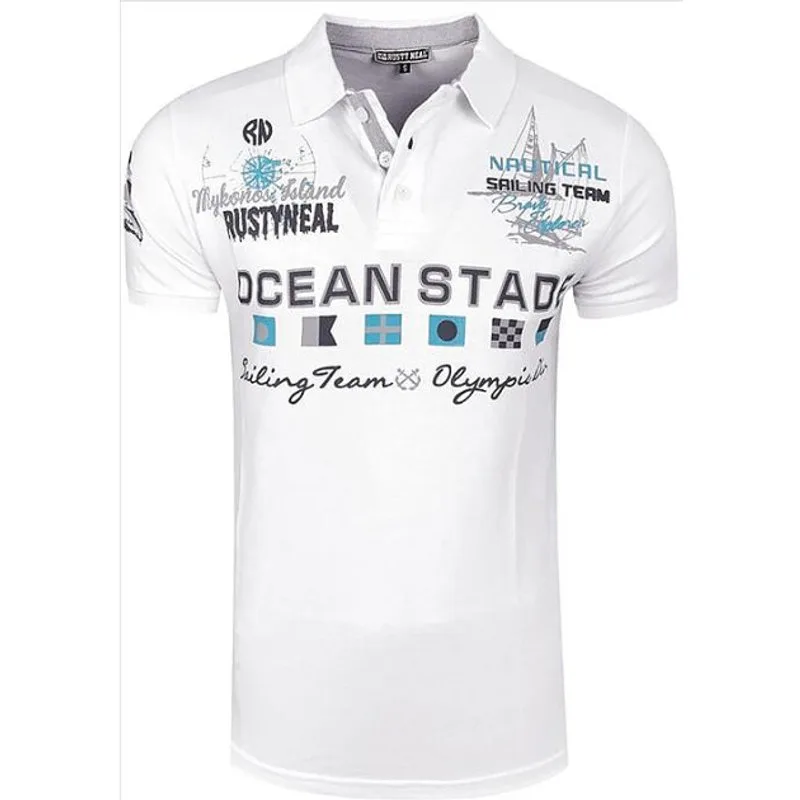 Poloshirt heren | Normale pasvorm | Rusty Neal | Stretch | All over print Stoere heren polo van het casual Moda Italia merk Rusty Neal. Dit mannen poloshirt met korte mouw en stretch is voorzien van een kraag met knopen en heeft een normale pasvorm. Materiaal: 100% Katoen Kleur: Wit