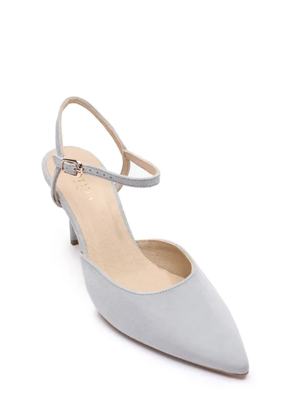 Design: Verstelbare riemen; Type sluiting: Riemsluiting; Type hak: Stiletto; Materiaal: Leer; Motief: Effen; Materiaal: Suède; Schoenneus: Spitse neus; Extra's: Velours look; Hakhoogte: Hoge hak (7-10 cm); Pasvorm van de schoenen: Normaal
