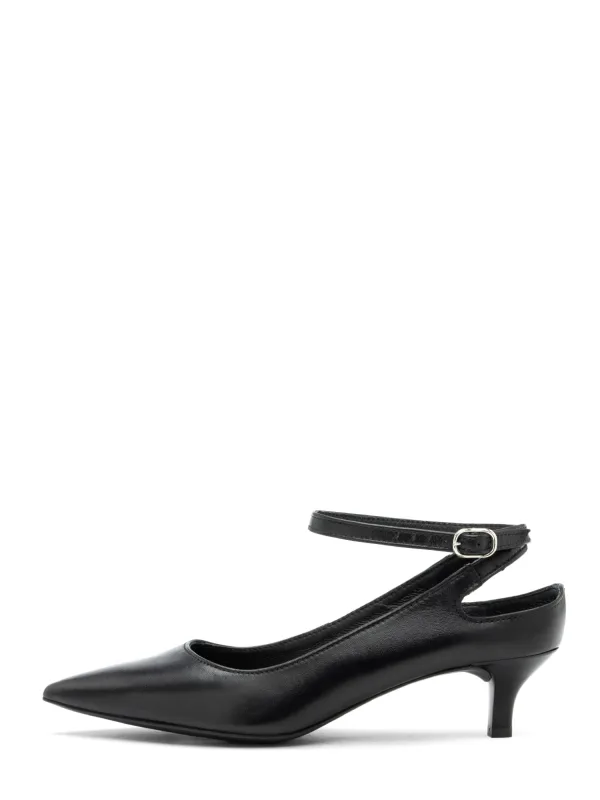 Design: Verstelbare riemen; Type sluiting: Gesp; Materiaal: Leer; Motief: Effen; Materiaal: Glad leer; Schoenneus: Spitse neus; Extra's: Op staal naden; Hakhoogte: Middelhoge hak (3-7 cm); Pasvorm van de schoenen: Normaal