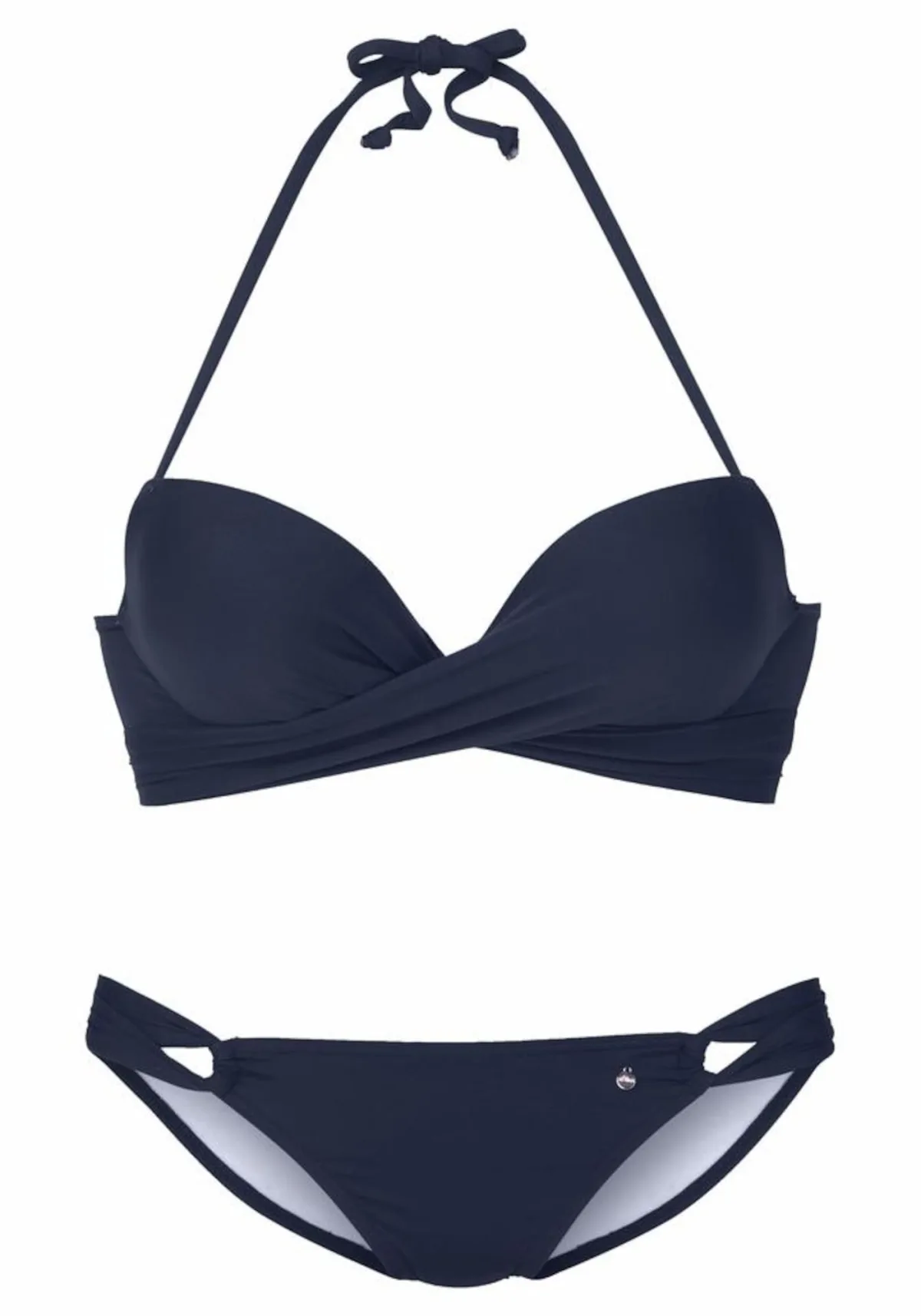 Cup soorten: Full cup bh; Soort bandjes: Halterbandjes; Bh/bikini type: Push-up; Beugel: Met beugel; Motief: Effen; Broekvorm: Regular fit; Details: Cut-outs, Gedrapeerd, Wikkel design; Extra's: Label plaatje, Op staal naden, Microvezels