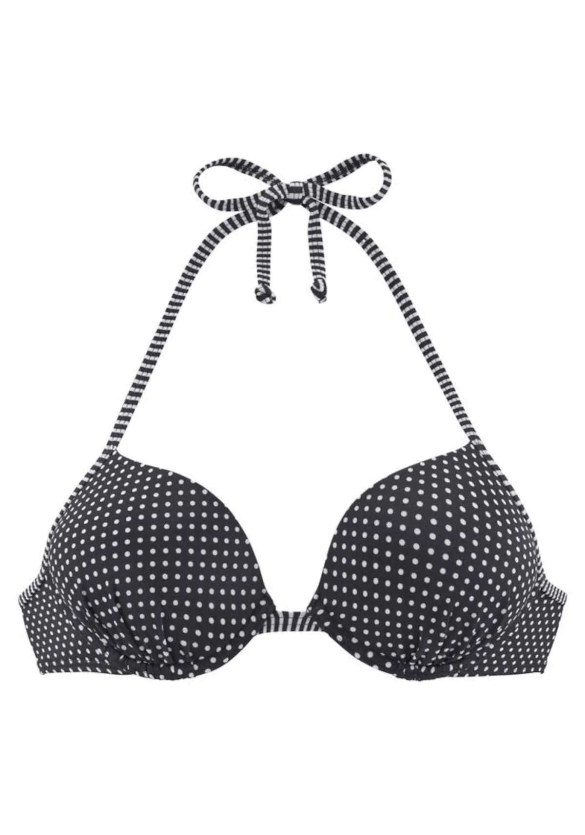 Cup soorten: Full cup bh; Soort bandjes: Halterbandjes; Bh/bikini type: Push-up; Beugel: Met beugel; Design: Om te knopen/binden; Motief: Gestippeld; Details: Gedrapeerd; Extra's: All-over patroon