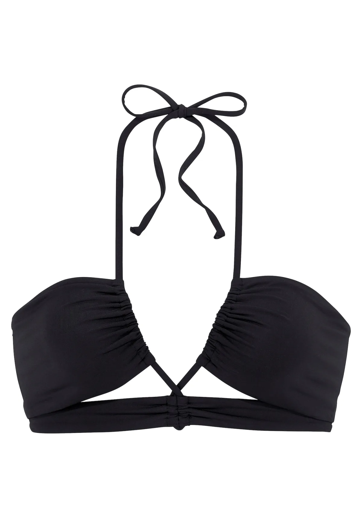 Cup soorten: Uitneembare cups; Soort bandjes: Halterbandjes; Bh/bikini type: Bandeau; Beugel: Zonder beugel; Design: Om te knopen/binden; Motief: Effen; Details: Gedrapeerd; Extra's: Op staal naden