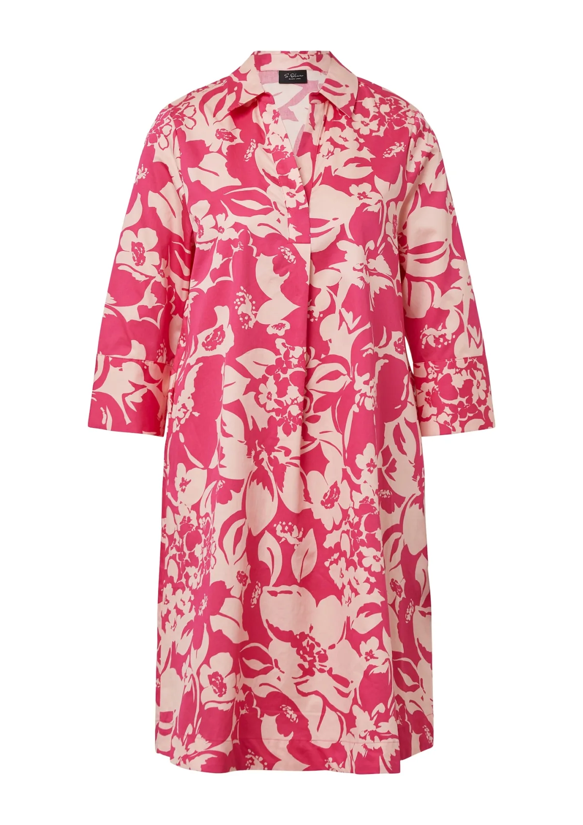 Design: Gevoerde zoom/rand; Materiaal: Katoen; Motief: Bloemenprint; Kraag: Kentkraag; Details: Plooien; Extra’s: All-over patroon; Lengte: Knielengte; Snit: Uitlopend; Pasvorm: Normale pasvorm; Armlengte: Driekwart mouw