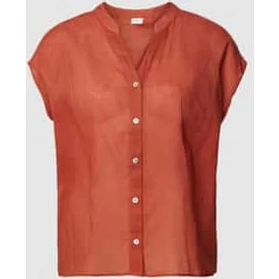Blouseshirt van s.Oliver RED LABEL;Mix van ramee en katoen;Los model;Effen design;V-hals;Knoopsluiting;Zijsplitten;Ruglengte bij maat 36: 61 cm