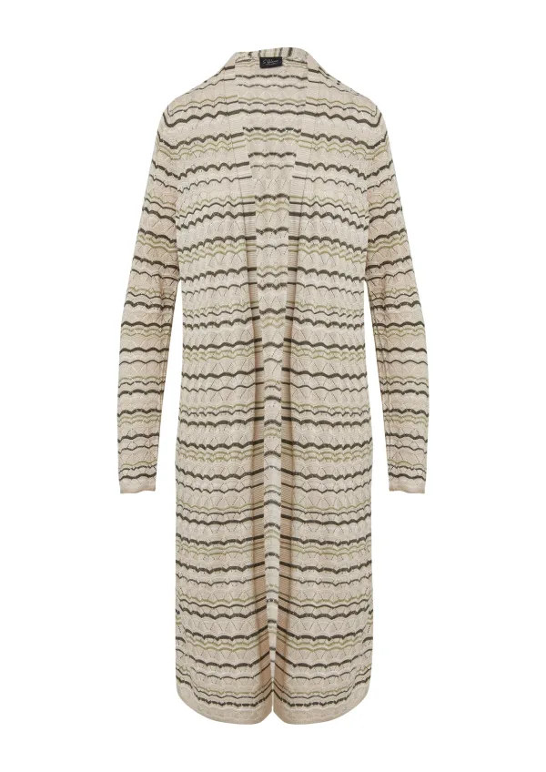 Design: Geribd ceintuurtje; Materiaal: Knitwear; Motief: Gestreept; Details: Mesh; Extra's: Visnet brei, Glinsterend, All-over patroon; Pasvorm: Normale pasvorm; Armlengte: Lange mouw; Lengte: Lange pasvorm