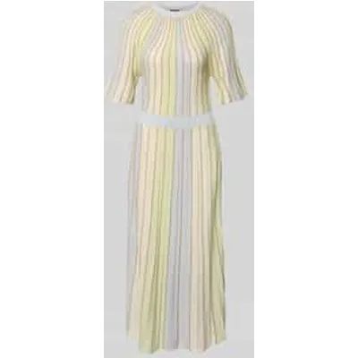 Dames gebreide jurk van s.Oliver BLACK LABEL;look: meerkleurig;pasvorm: getailleerd;Lengte: midi;Hals: ronde hals;Patroon: gestreept;mouwvorm: korte mouw;materiaalverwerking: knitwear;Materiaal: viscosemix