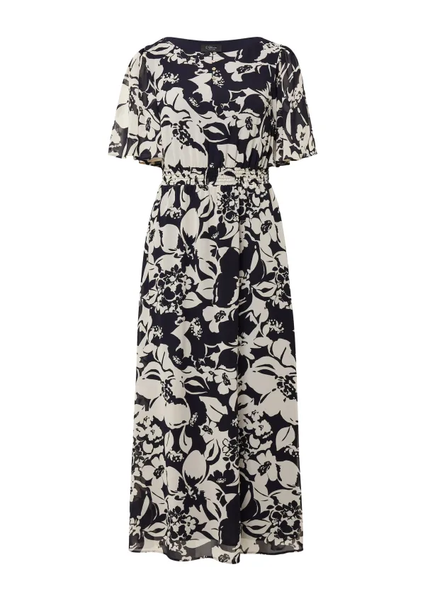 Design: Gevoerde zoom/rand; Halstype: Ronde hals; Motief: Bloemenprint; Details: Gedrapeerd; Extra’s: All-over patroon; Lengte: Lang/maxi; Snit: Getailleerd; Pasvorm: Normale pasvorm; Armlengte: Halve mouw