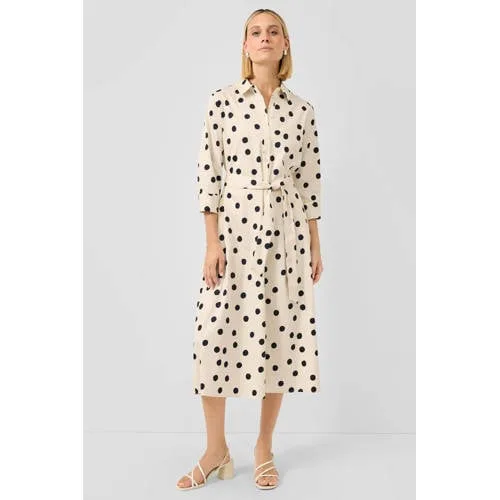 dames blousejurk van s.Oliver BLACK LABEL;look: all-over motief;Pasvorm: regular fit;Lengte: midi;kraagmodel: overhemdkraag;Patroon: polka dots;Sluiting: knoopsluiting, tailleriem om te strikken;Mouwvorm: lange mouw, ballonmouw;mouwboord: manchet;Zakken: zij- steekzakken;Materiaal: katoenmix
