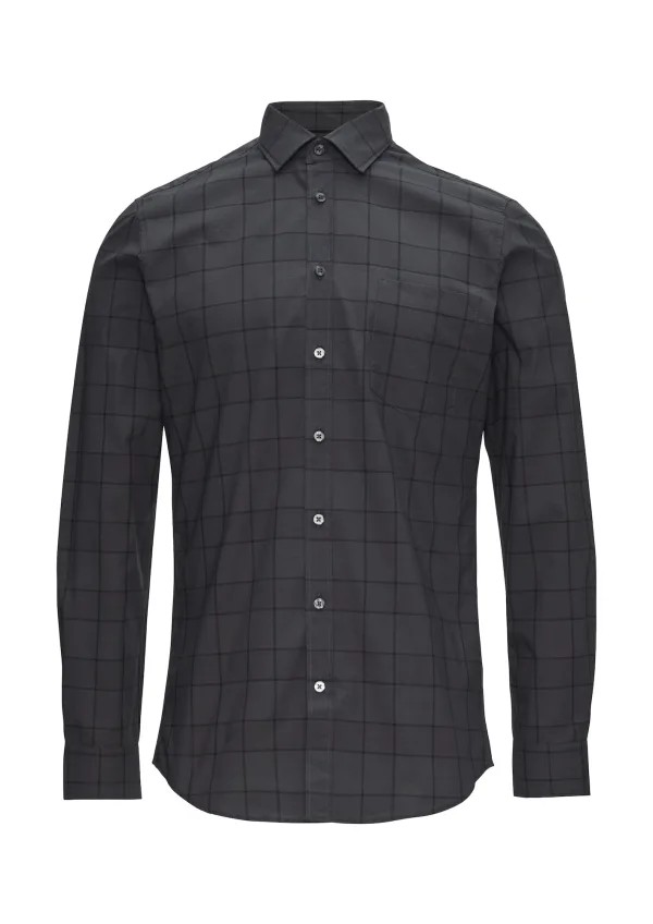 Design: Ronde zoom, Borstzak; Type sluiting: Knoopsluiting; Materiaal: Katoen; Motief: Geruit; Kraag: Kentkraag; Extra's: All-over patroon, Voelt zacht aan; Pasvorm: Regular fit; Armlengte: Lange mouw