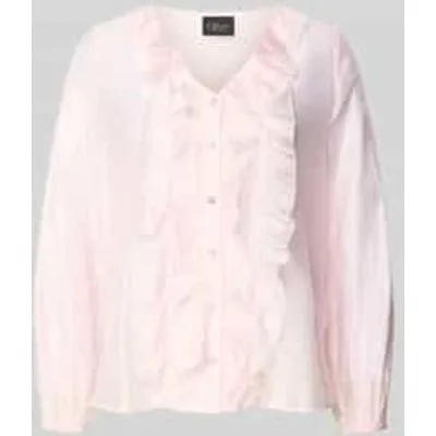 dames blouse van s.Oliver BLACK LABEL;look: effen;Pasvorm: regular fit;kraagmodel: kraag met ruches;hals: V-hals;Sluiting: enkele knoopsluiting met volants;Mouwvorm: lange mouw;materiaalverwerking: fijne geweven structuur;Materiaal: lyocellmix