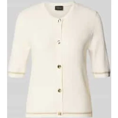 Dames Gebreid jack van s.Oliver BLACK LABEL;look: effen;Pasvorm: regular fit;Sluiting: enkelrijige knoopsluiting;Details: labelcontraststrepen van effectgaren;hals: ronde hals;mouwvorm: korte mouw;Mouwboord: geribd;rompzoom: geribd;materiaalverwerking: knitwear;Materiaal: puur katoen
