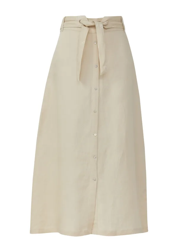 Design: Placket, Tailleriem; Type sluiting: Knoopsluiting; Materiaal: Linnen; Motief: Effen; Rokvorm: A-lijn rok; Details: Borduursels; Extra's: Op staal naden, Lichte stof; Lengte: 3/4 lengte; Pasvorm: Normale pasvorm