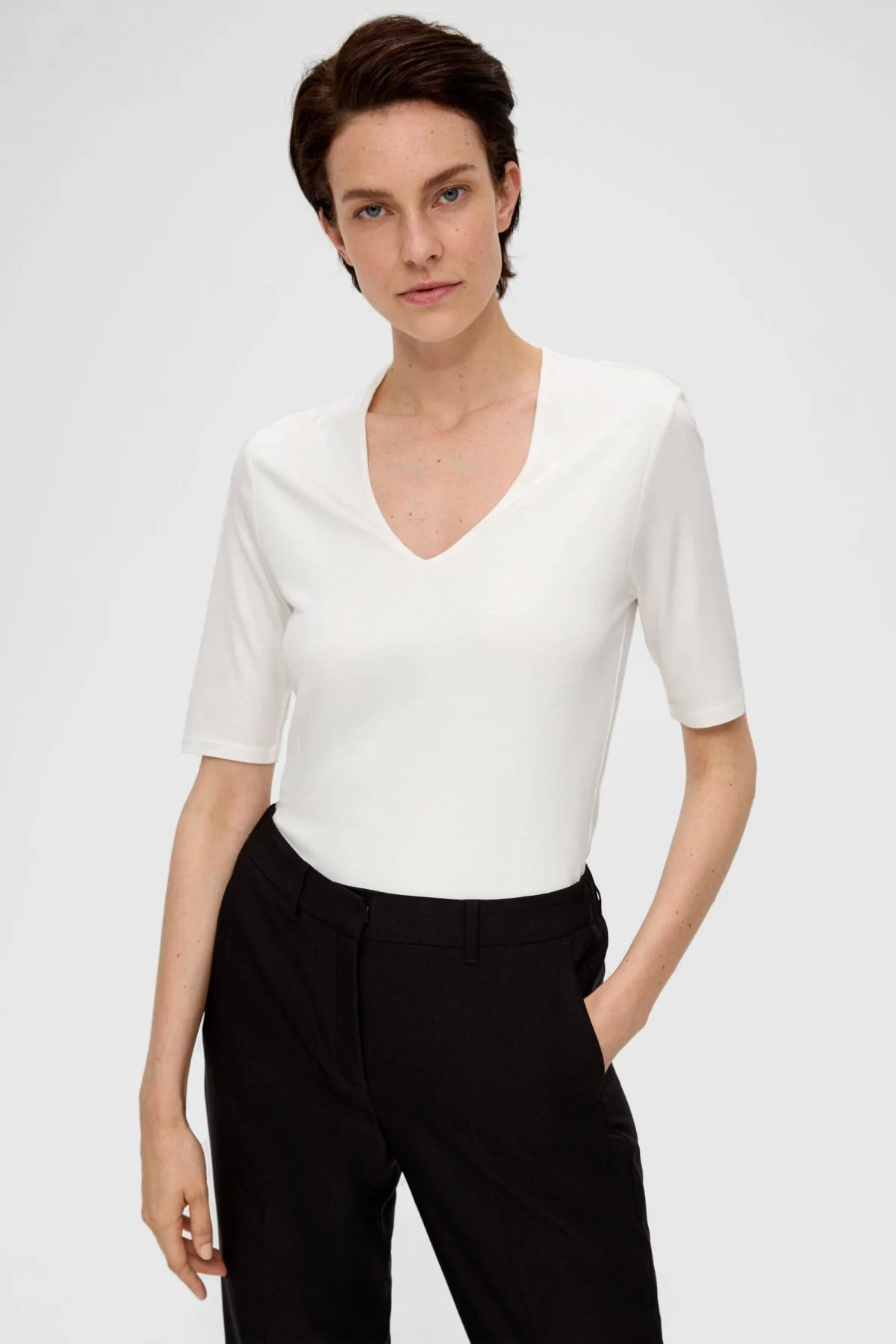 s.Oliver BLACK LABEL slim fit T-shirt viscose gebroken wit Prijzen